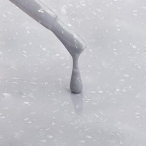A base é camuflada, cor – cinza esfumado com flocos de prata metálicos. Os flocos têm uma textura fina e delicada.. A base é de consistência média, uniformemente aplicada, não espalha, autonivelante bem, solúvel. Devido à pigmentação suficientemente forte, esconde perfeitamente todas as imperfeições da placa ungueal. Adequado tanto para um aplicação de 1 cor, quanto como a base para manicure francesa.