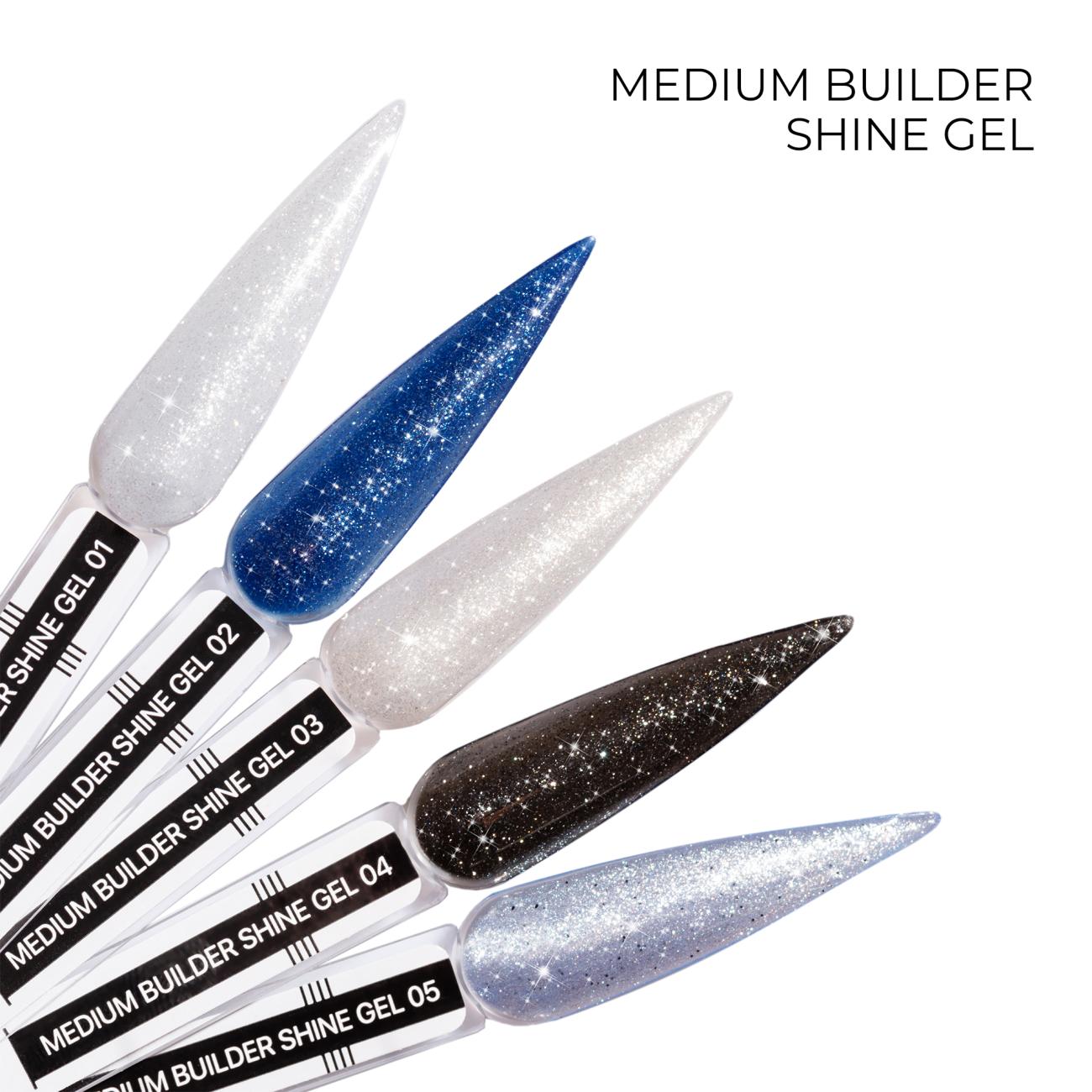 Medium Builder Shine Gel — uma coleção festiva vibrante e memorável dos já muito apreciados géis para modelagem de unhas, agora com a adição de brilho cintilante.