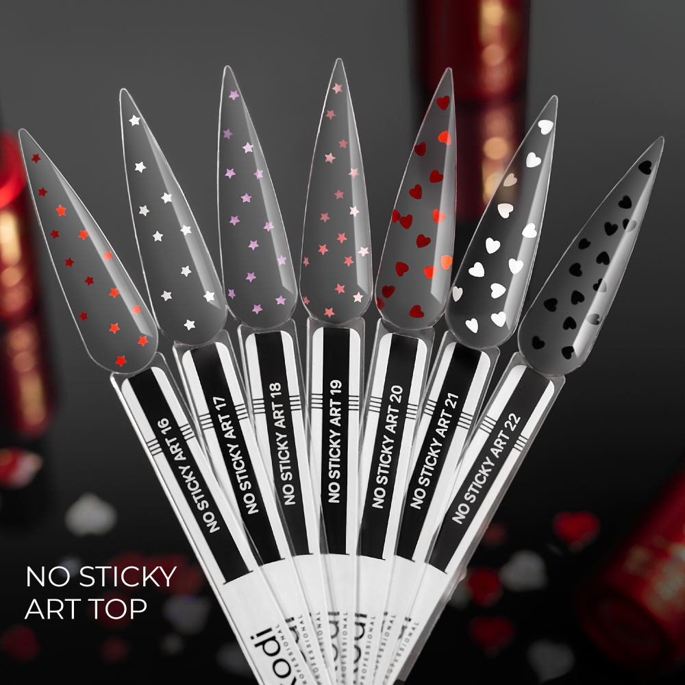 A paleta é composta por tops transparentes com elementos decorativos adicionados. O tom 21 é um Top Coat transparente com uma dispersão de românticos corações brancos cintilantes. Complementa na perfeição qualquer manicure, tornando-a especialmente ingénua e cativante. O top não deixa camada de dispersão, aplica-se facilmente e distribui-se de forma uniforme com o pincel, sem escorrer. A fórmula inclui filtros UV que mantêm a cor inalterada e protegem contra o amarelamento.
